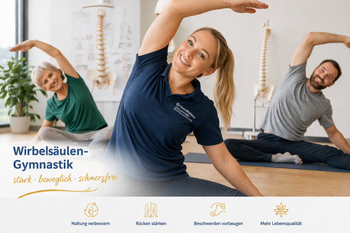 Eine gesunde, stabile Wirbelsäule ermöglicht schmerzfreie Bewegung, eine aufrechte Haltung und mehr Lebensqualität im Alltag. Durch gezielte Bewegung, Kräftigung und Prävention kann dieses Fundament gestärkt und langfristig erhalten werden.